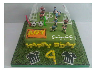 Pesenan temenku di kantor lama... mintanya football cake, yg ada gawang sama org maen bola... yakk.. pilihan jatoh ke mainan daripada figurine karena agak kecil2... semoga yg ultah si Agy suka sama kuenya...